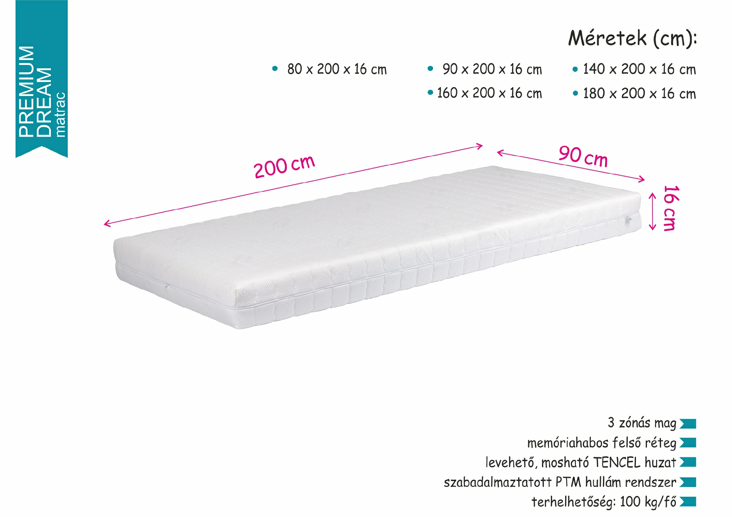 Az alvás napunk 1/3-át teszi ki időben, és nagymértékben hat arra, hogyan érezzük magunkat a nap további 2/3-ad részében. A jó matrac biztosítja az kellemes éjszakai pihenést, valamint a vitalitást és az erőt nap közben. A PREMIUM DREAM mindegyik alvási szokáshoz ajánlott.
