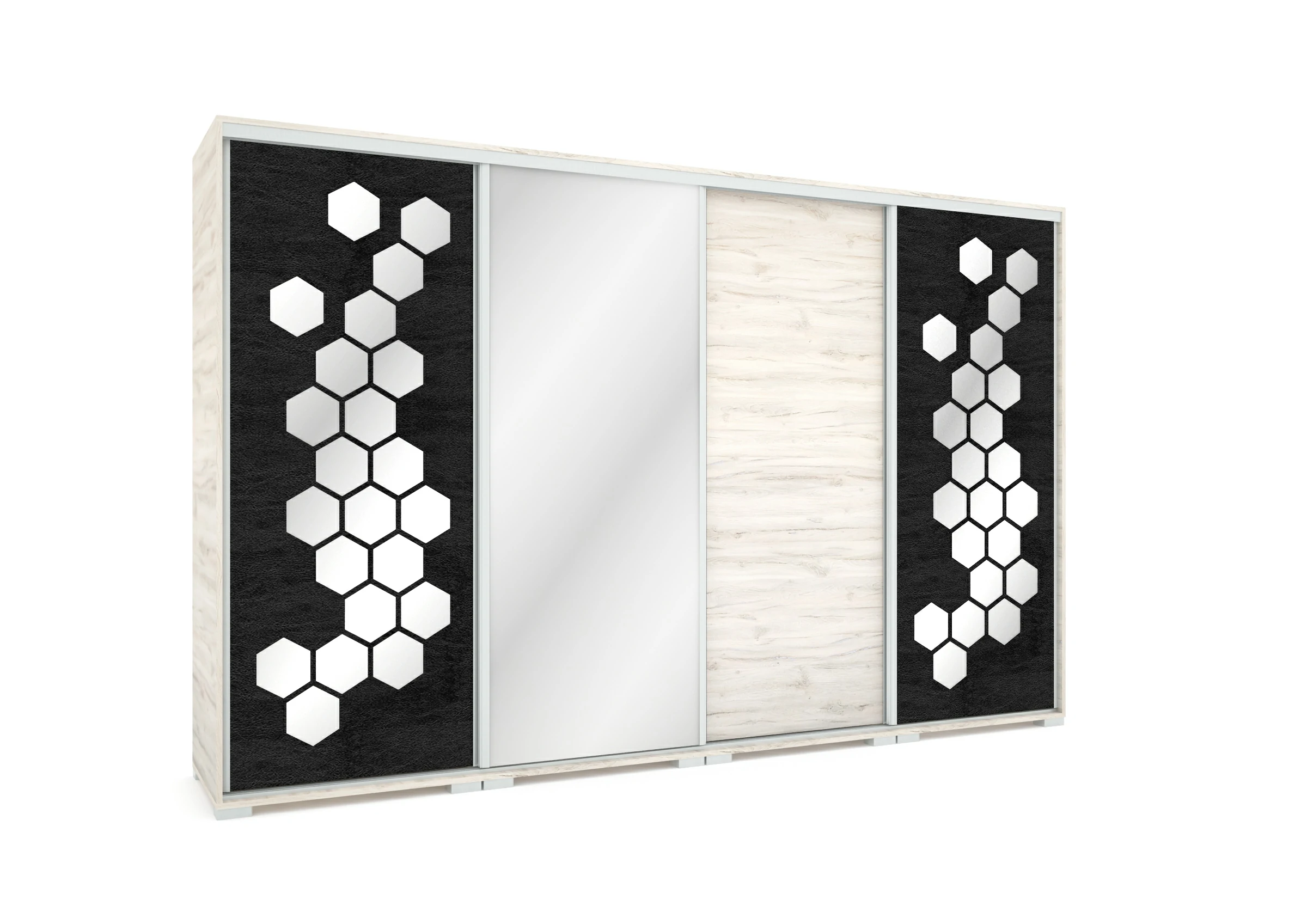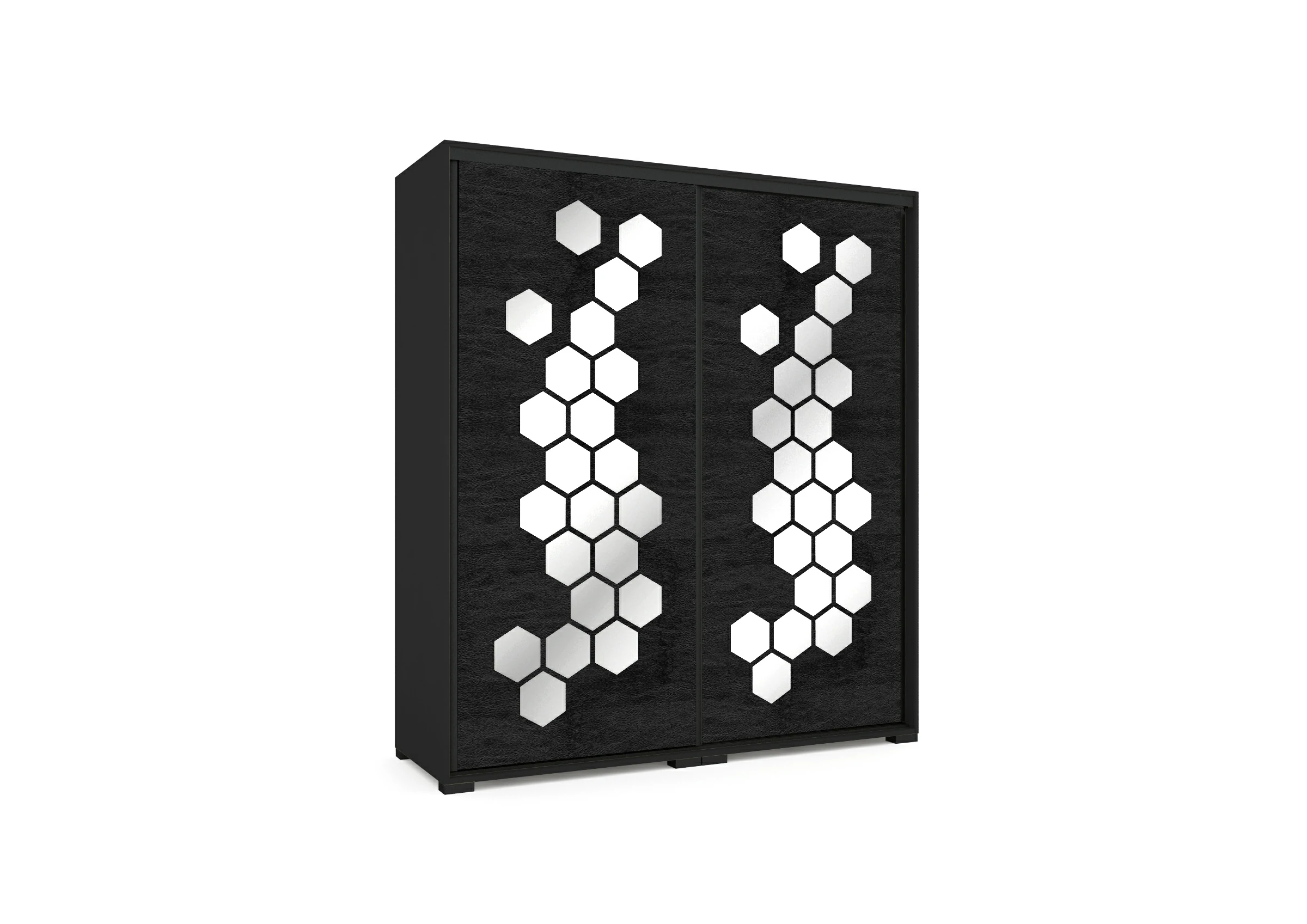 A Honey gardrób egyedi tükör dekorációval azonnal felhívja magára a figyelmet. Kellemes bútorlapszínek, a tér növelése mind-mind jellemzik a gardróbot. 140, 160, 180, 239, 318 cm-es kivitelben kapható, és 17 bútorlapszín közül választhatnak kedvükre. A tolóajtónak köszönhetően a tér maximális kihasználását is lehetővé teszi. Belső elrendezése bővíthető polcokkal, fiókkonténerekkel, mándli rudakkal. Alsó és felső magasító is kérhető hozzá.