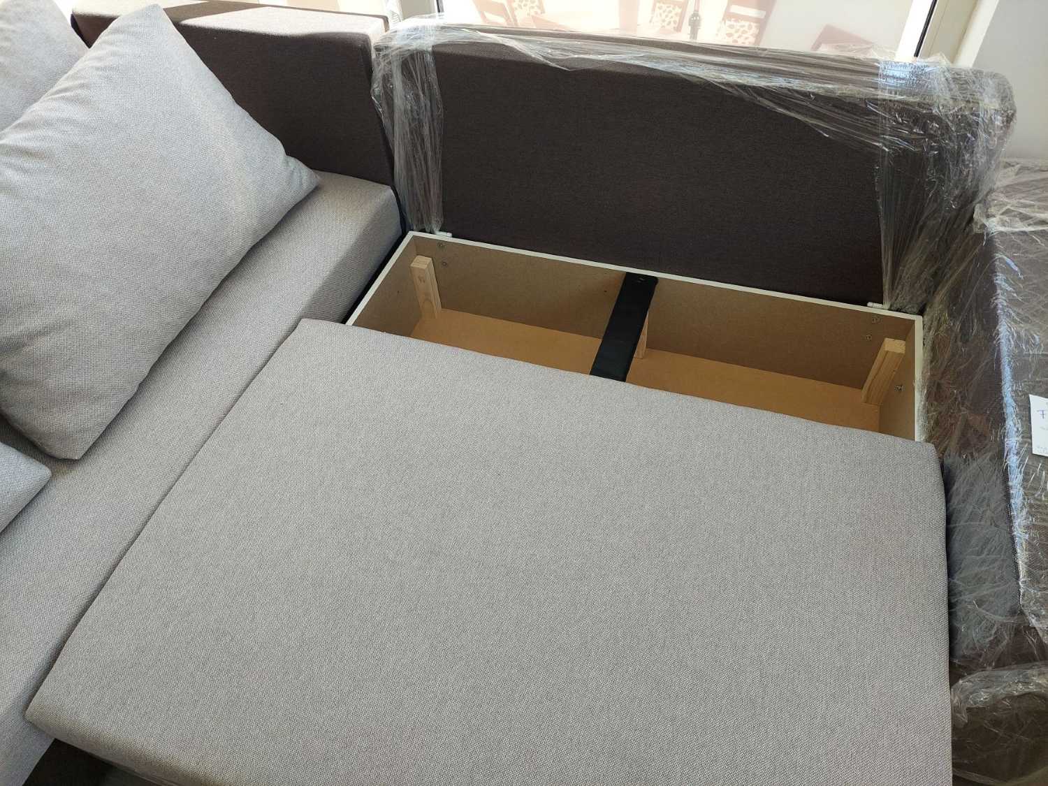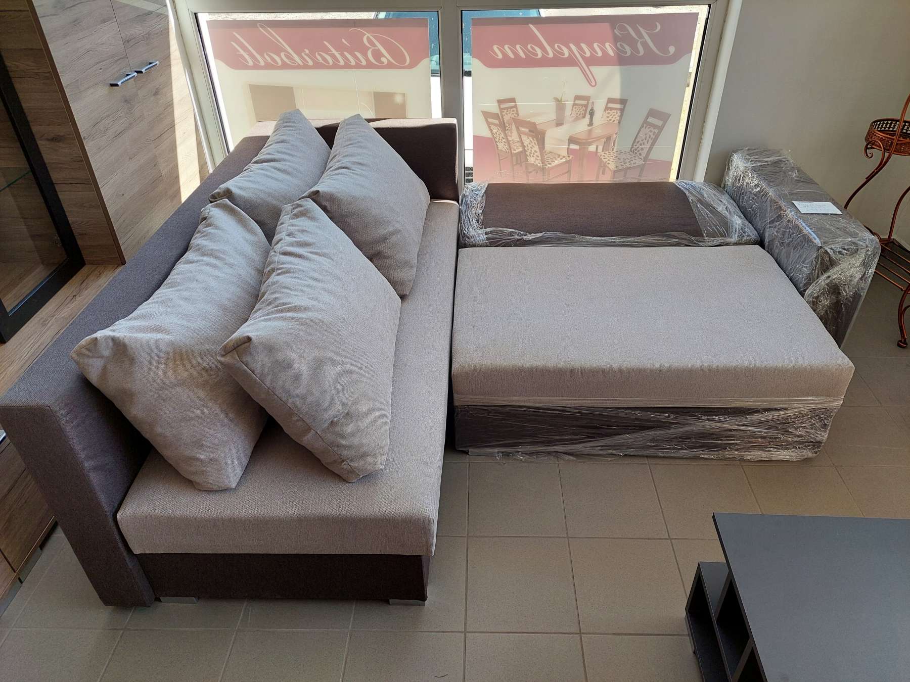 A párnák levétele után kiemelő mechanikásan előre húzható az ülőrész, majd a háttámla előredönthető, ágyneműtartó is van a sarokülőben, kinyitás után oldalról lehet ágyazni.