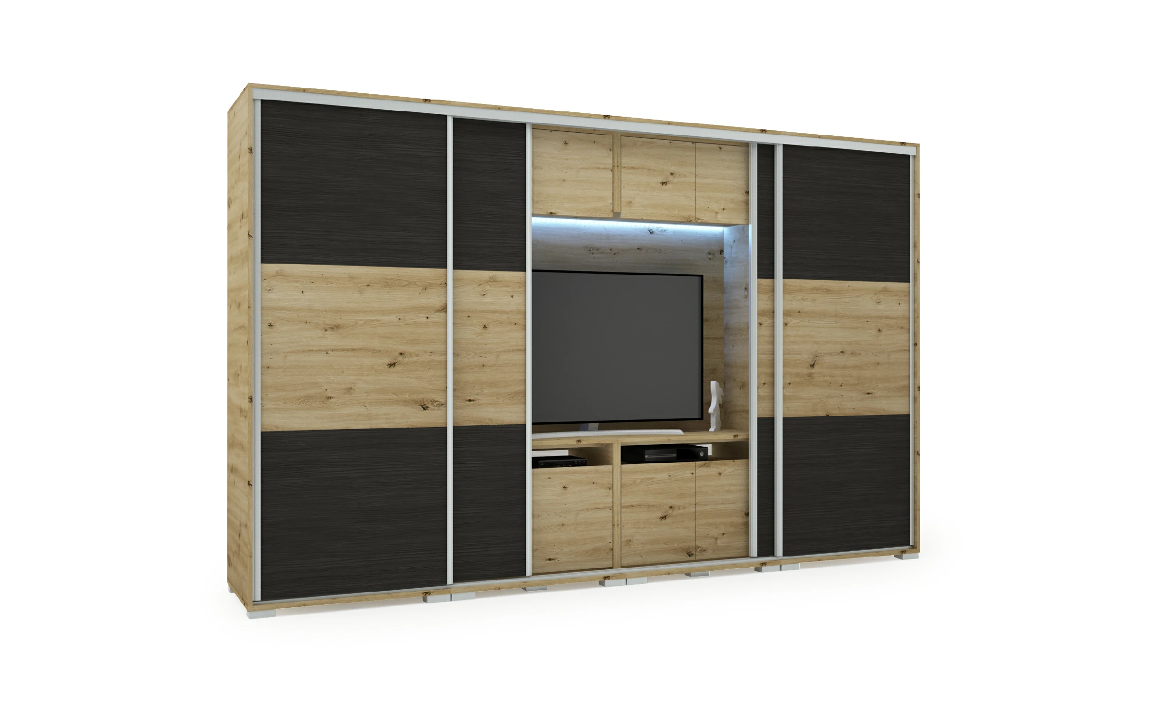 Egyediségét az adja, hogy zárt állapotban egy elegáns tolóajtós gardróbnak tűnik, viszont a középső részen televízió számára kialakított hely található.
