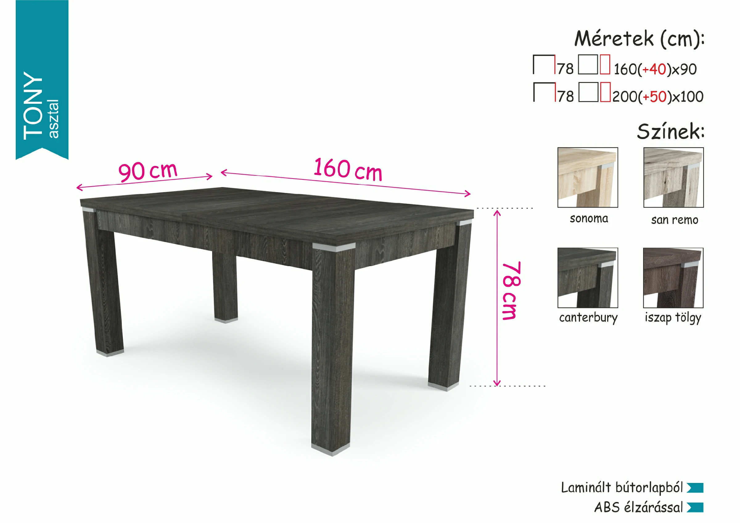 A Tony asztal igazi vendégváró! 160×90 cm és 200×100 cm-es mérete is tovább bővíthető.