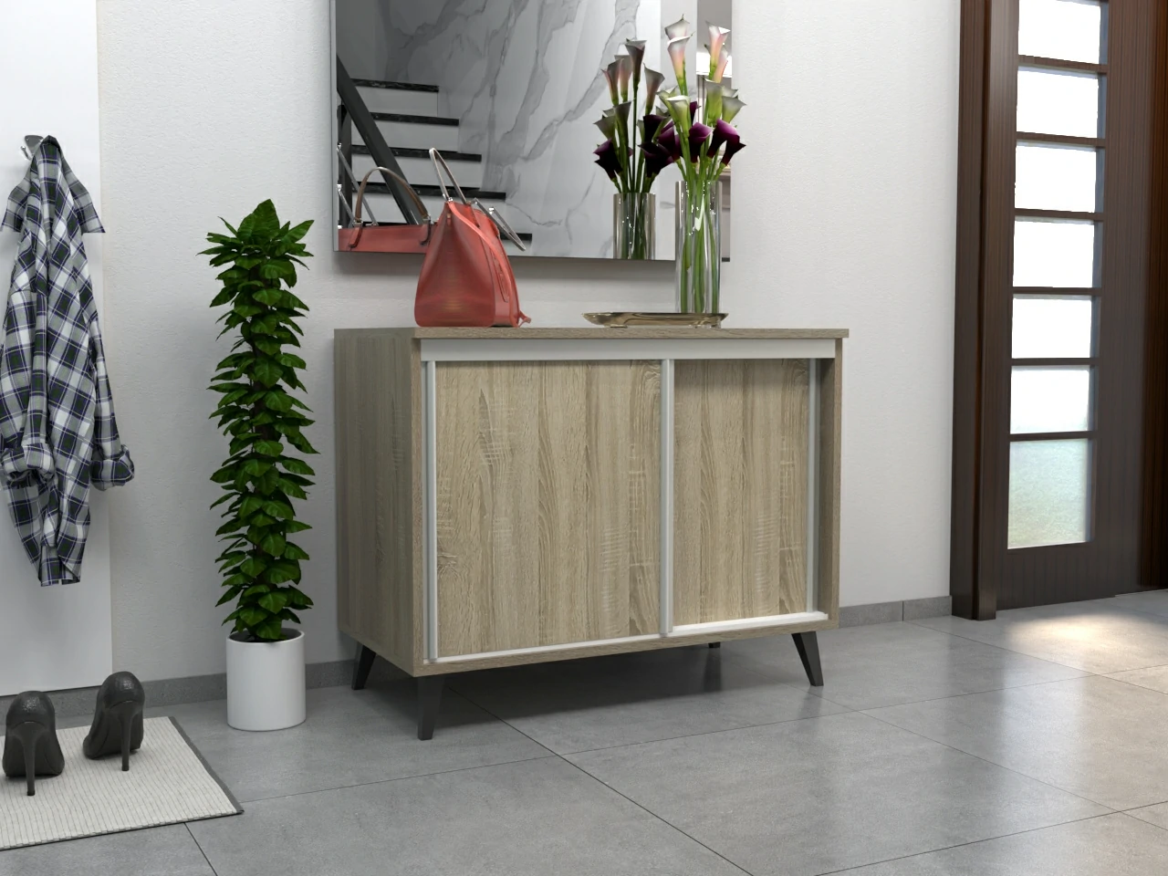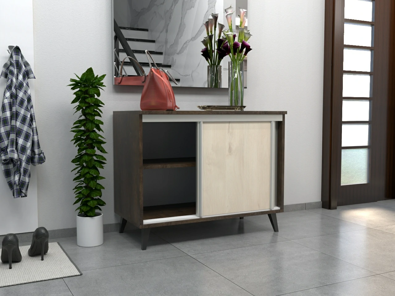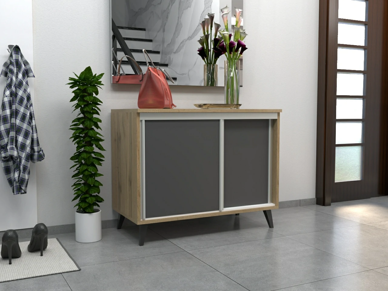 A cipős szekrény 18 mm-es laminált bútorlapból ABS élzárással és köldökcsapozással készül.