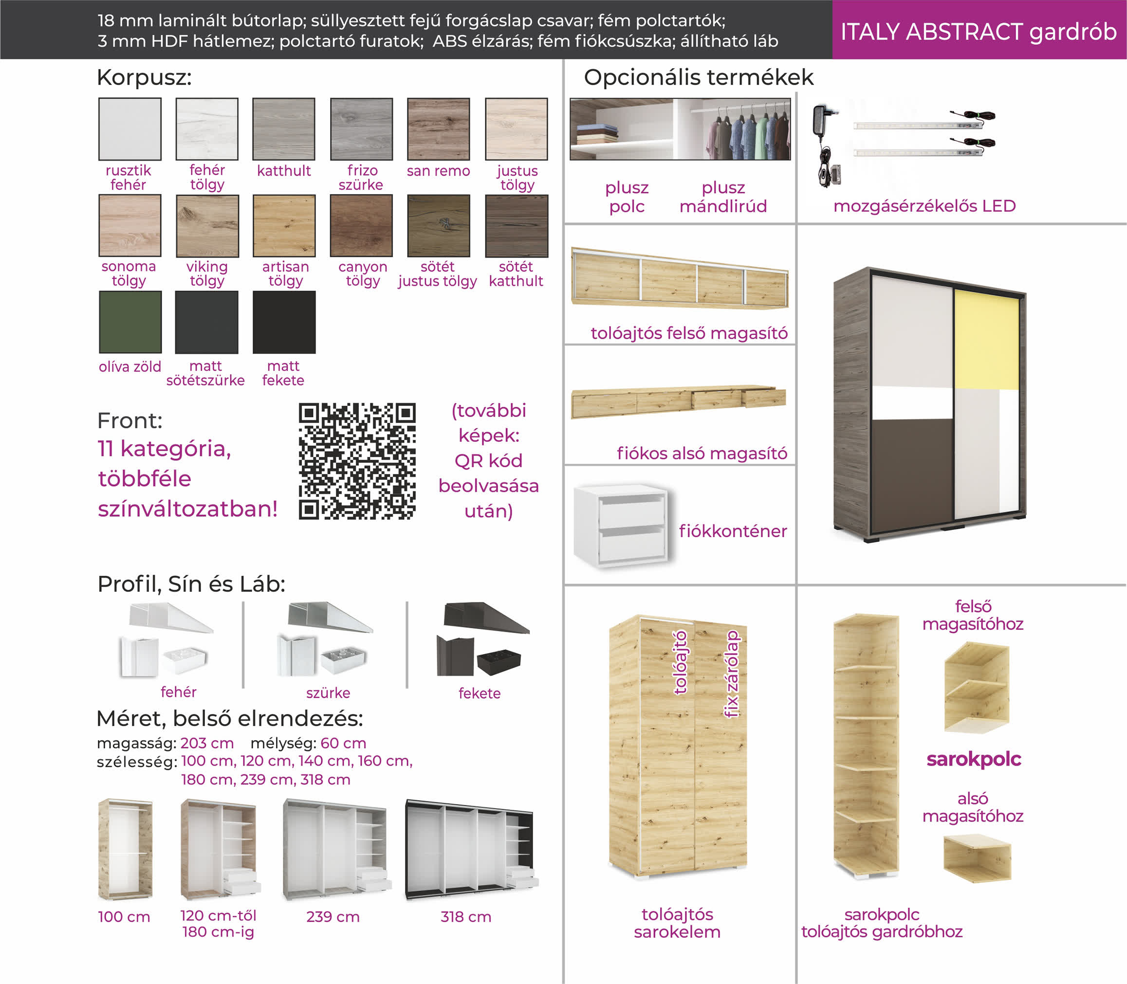 Nem csak a gardrób belsejét variálhatja át, hanem a korpusz színét és az ajtókon lévő képet is kedve szerint megválaszthatja. (Ezektől nem függ a gardrób ára.)